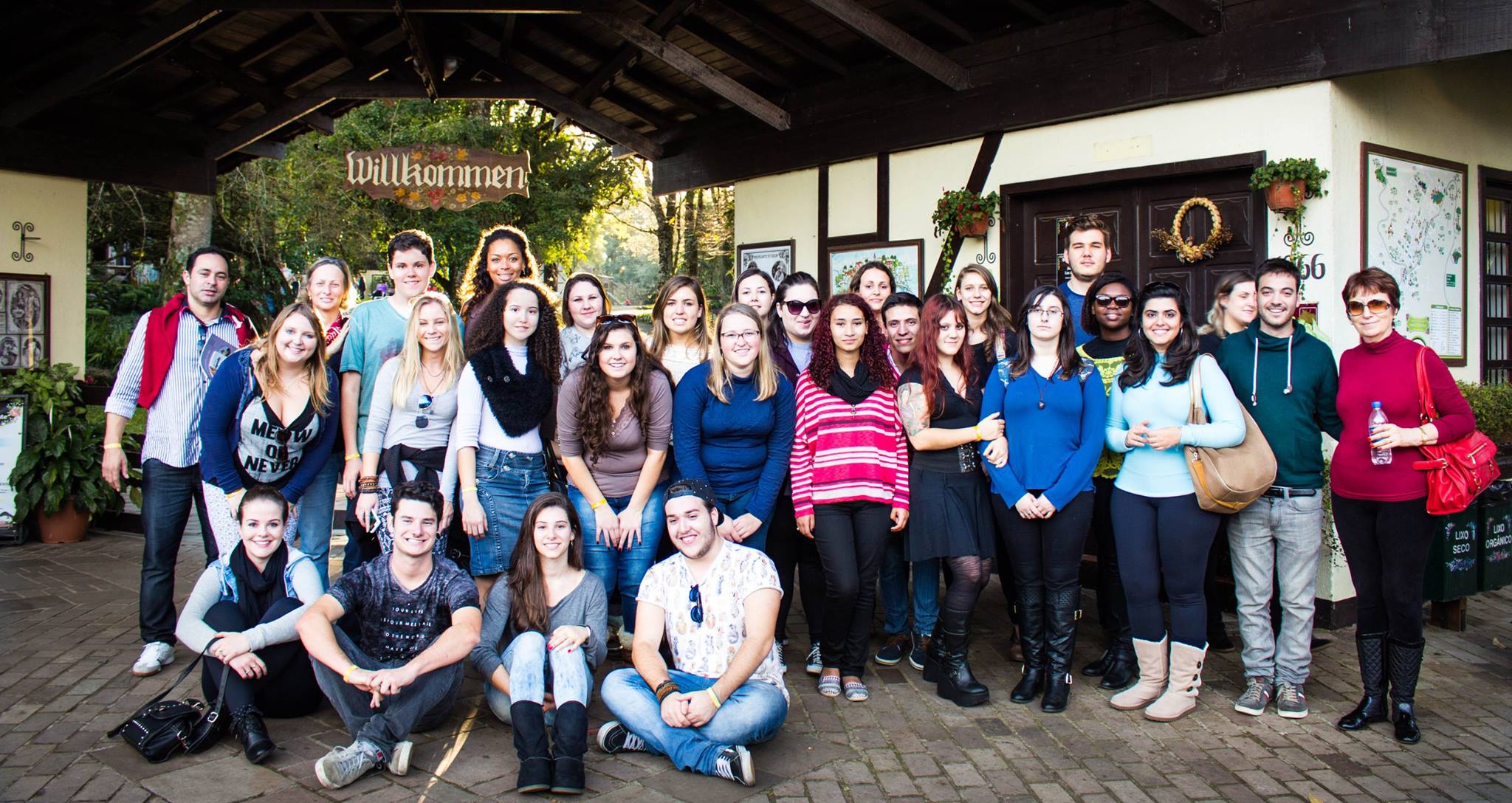 Bacharelado em Turismo, o Programa de Pós-Graduação em Turismo e Hospitalidade, e os cursos de Hotelaria, Tecnologia em Eventos e em Gastronomia. Na foto ao lado, estudantes de graduação - dos cursos de