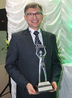 Reitor recebe troféu na Câmara de Indústria, Comércio e Serviços de Nova Prata.
