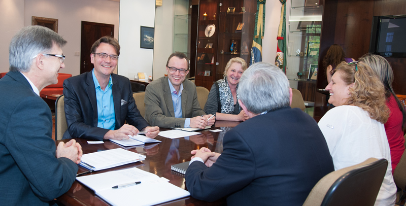 Fabíola Carla Sartori; e a diretora do Instituto de Saneamento Ambiental, Vânia Elisabete Schneider, que iniciou em 2005 intercâmbio, através do projeto Alfa II, com a Universidade de Ciências Aplicadas de
