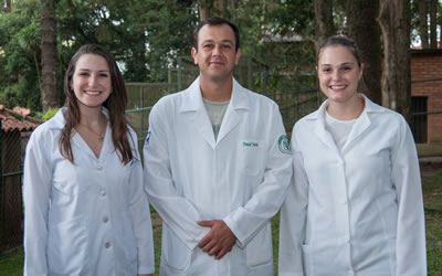 Barbara, Daniel e Elisa durante aula de Ornitopatologia no Jardim Zoológico. |